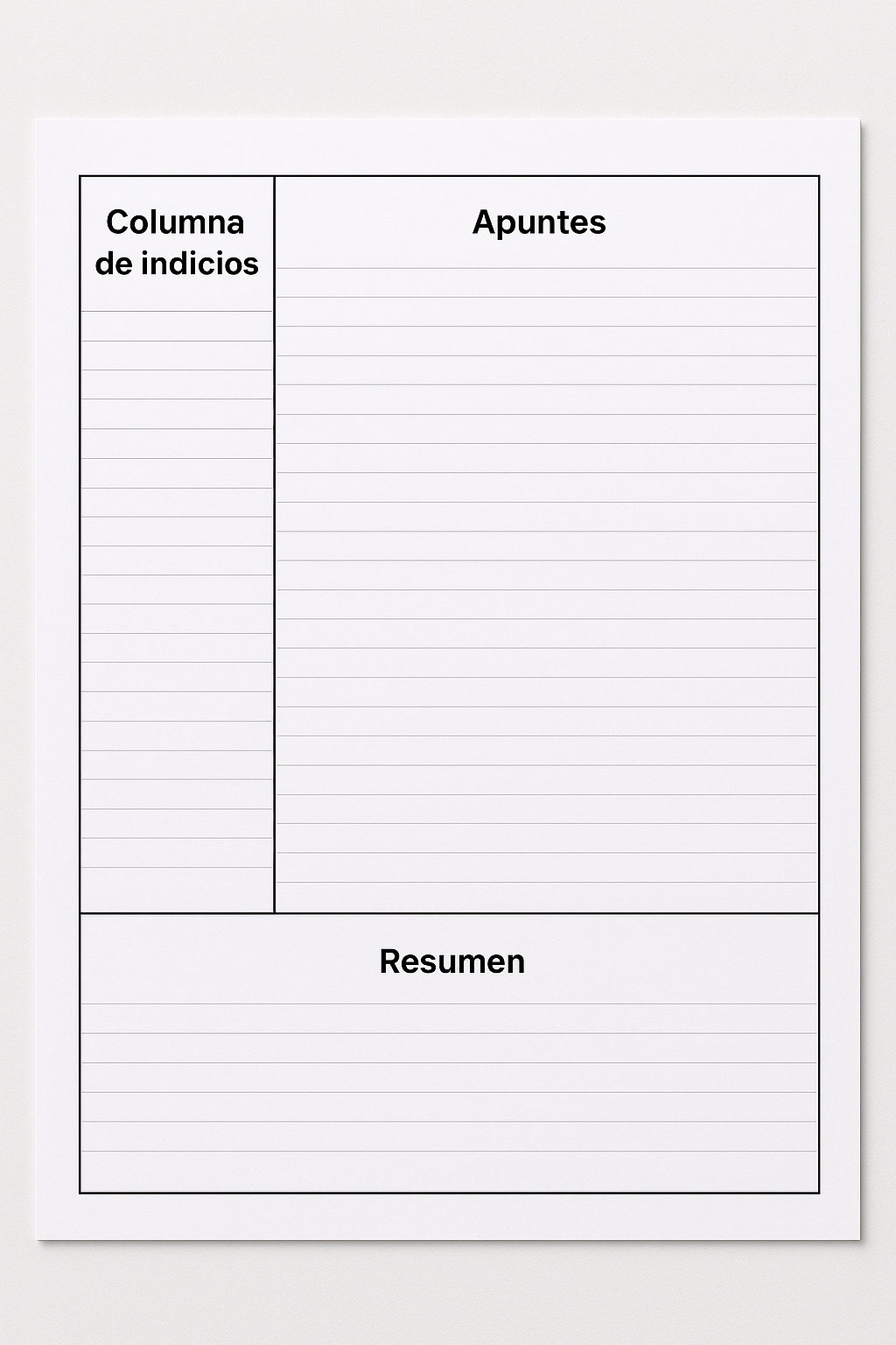 Este sistema inventado en la universidad de Cornell, consiste en tomar apuntes separando la hoja en 3 secciones.